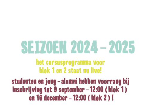 Wil je liever niets missen? Meld je dan aan voor de CREA nieuwsbrief met het laatste nieuws over de CREA cursussen, CREA agenda, speciale feestjes & events en de CREA eindpresentaties.
